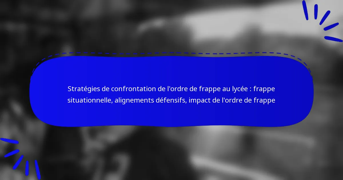 Les stratégies de confrontation de l’ordre de frappe au lycée sont essentielles pour optimiser les opportunités de marquer et contrer les défenses adverses. En arrangeant soigneusement les joueurs dans la formation, les entraîneurs peuvent améliorer la performance de l’équipe et influencer les résultats des matchs. Le frappeur en situation et les alignements défensifs jouent un rôle critique dans ces stratégies, car ils aident à déterminer les meilleurs joueurs à affronter dans des scénarios et alignements de jeu spécifiques.